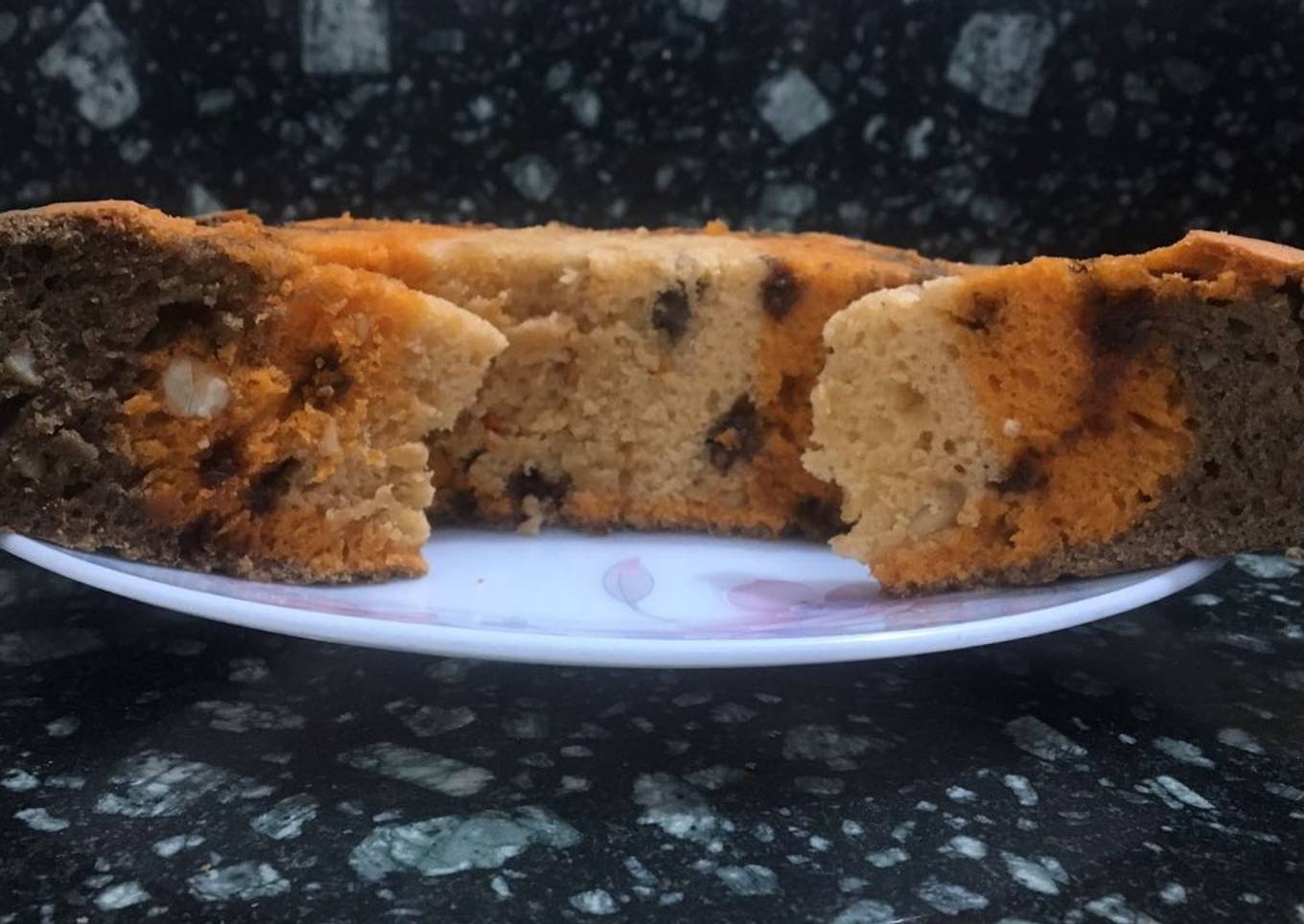 - Sprinkle choco chips, and tab 2-3 times on platform. Put it in oven, bake for 30-35 min.