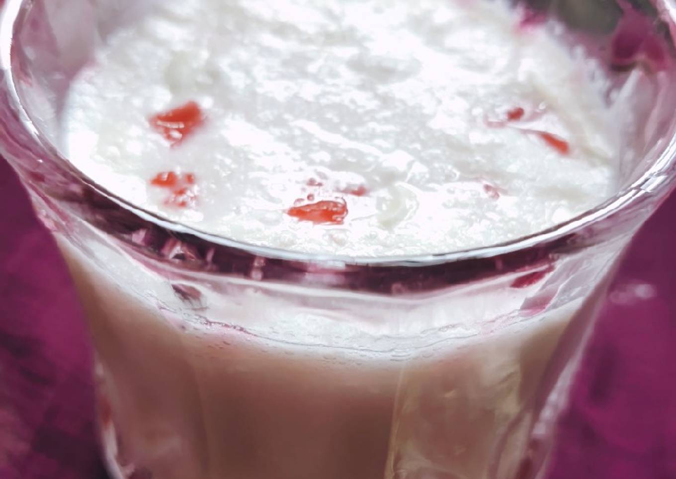 - Now blend it well and and serve it in a glass whose sides are garnished with roohafza.