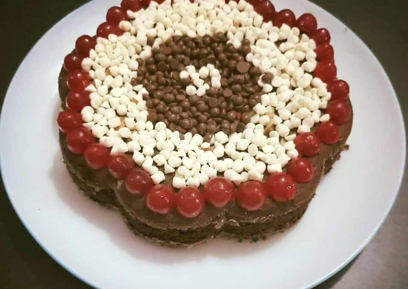 - Garnish with chocolate chips and cherries over top.